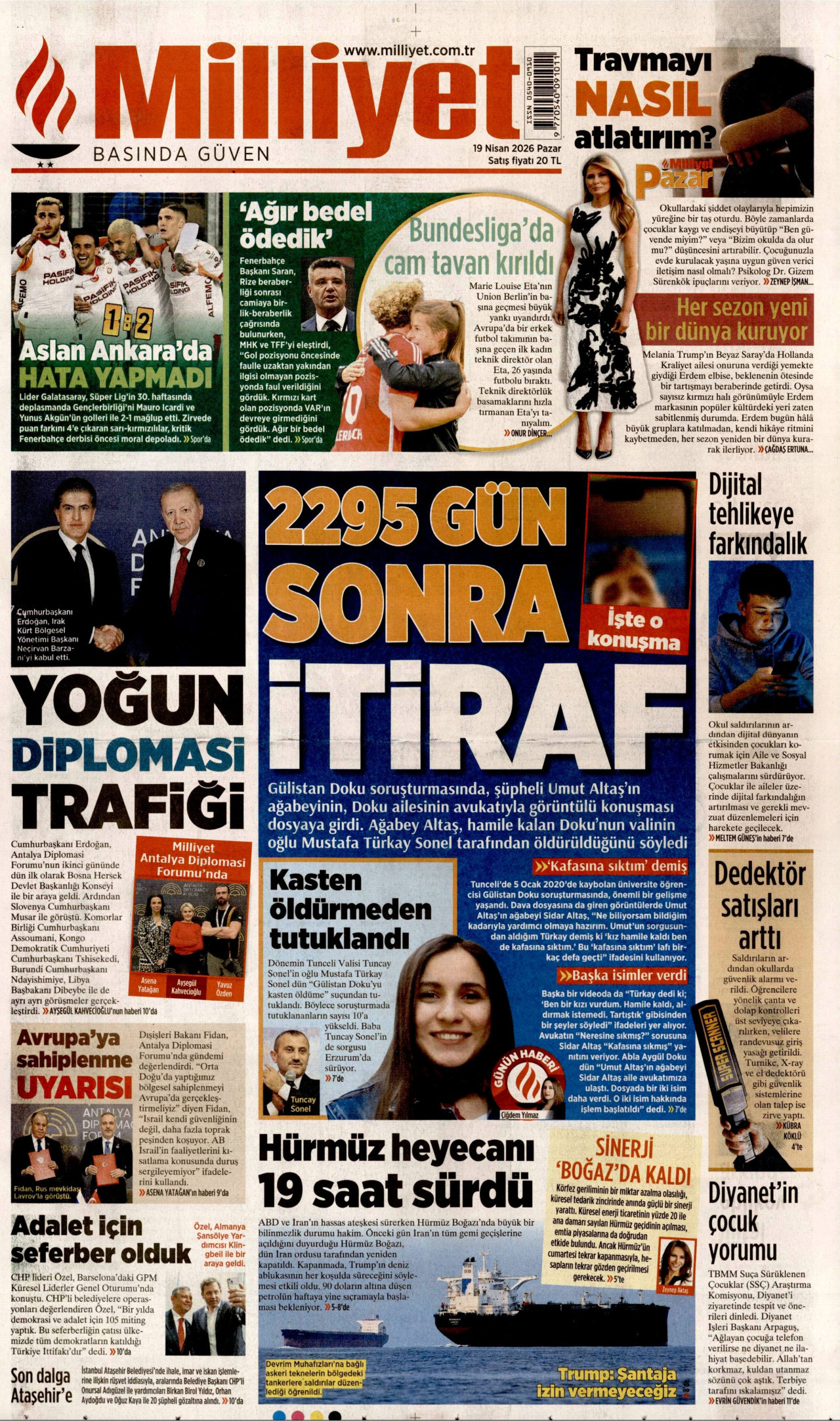 MİLLİYET Gazetesi 19 Nisan 2026, Pazar Günü Manşeti